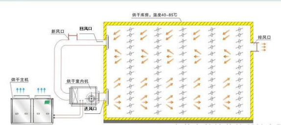 熱泵熱風爐 (有蒸汽鍋爐的配散熱器) (也可使用燃氣)